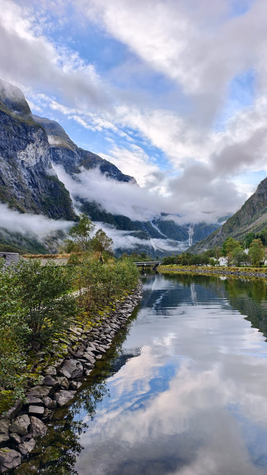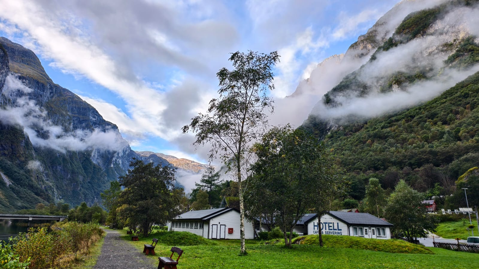 住在Gudvangen的那個晚上,雨從下午一直淅淅瀝瀝地下着。我們滿心期待着第二天早晨起來雨能停,畢竟天氣決定了我們能否進行戶外活動。感恩的是,天父真的爲我們打開了一扇小小的天窗,讓我們得以一睹陽光照耀下雲霧繚繞的絕美景色。
