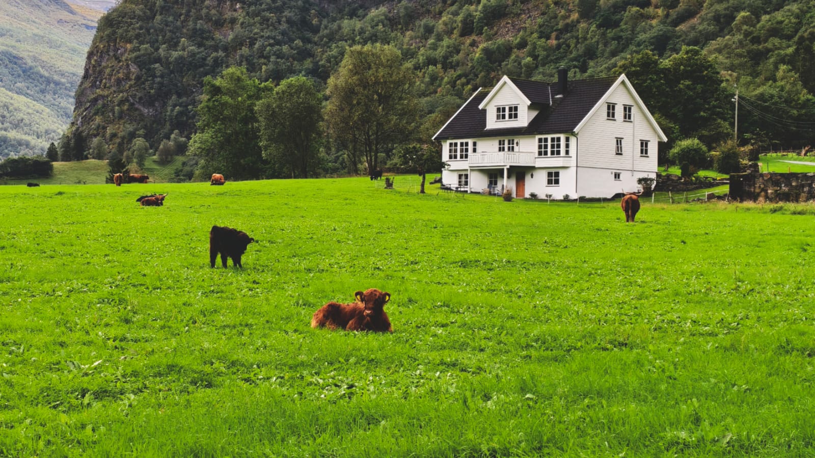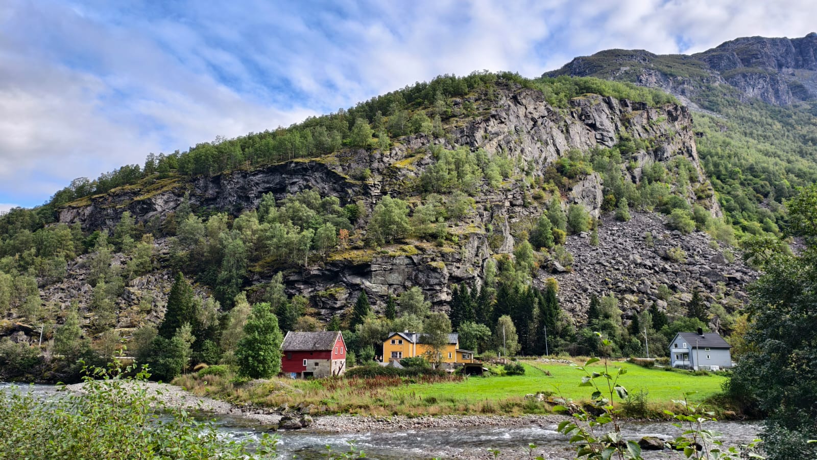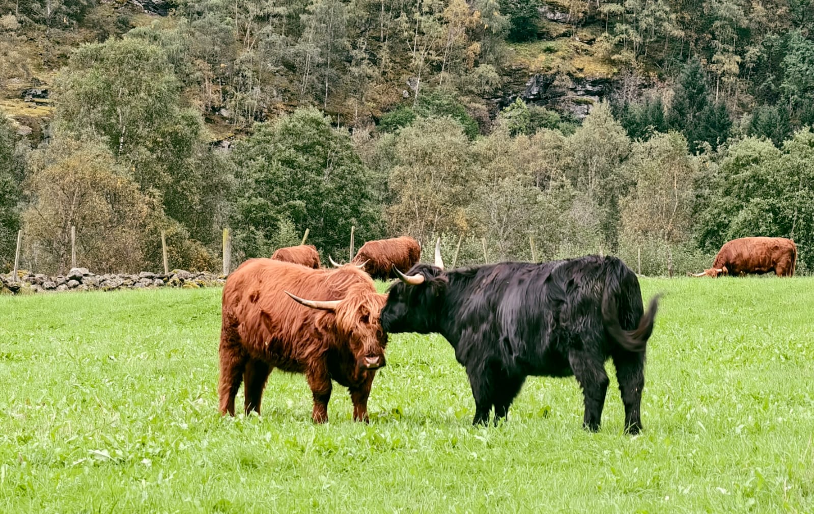 在Flam住宿的兩天也是如此。第一天去的時候,雨一直下,我們推着行李走了二十多、三十分鐘才到預訂的農場民宿。第二天早上,陽光竟燦爛地照耀著大地。雖說天氣預報預測13:00會下雨,但我們還是擁有了一個美好的早晨,可以在周邊悠閒地走走。不知不覺間,我們竟然走了18000步。13:30,雨真的如期而至,還好我們那時已經差不多回到了農場。