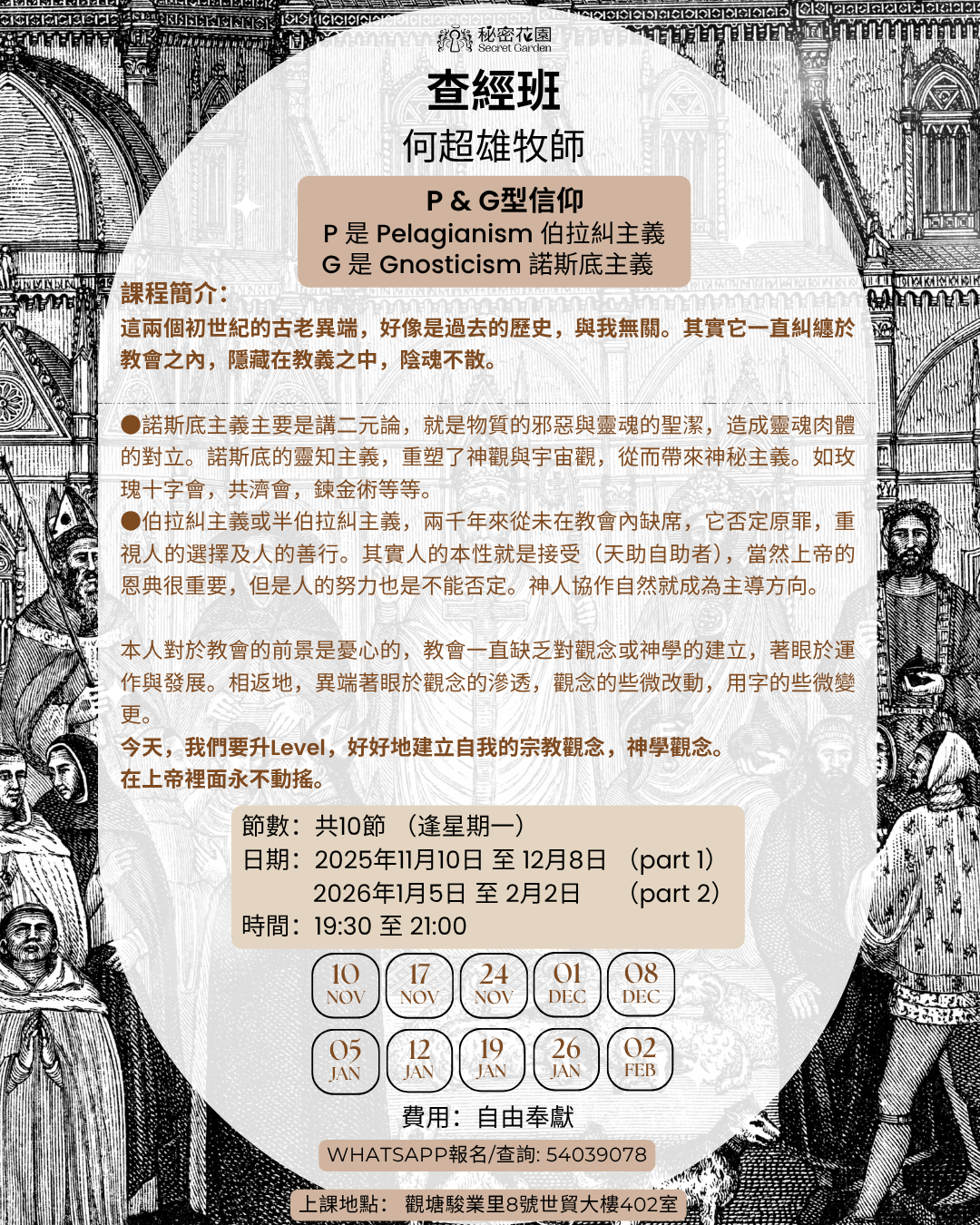 時間:晚上7:30至9:00(每課 1.5 小時 共10堂)